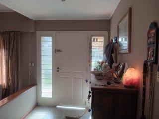 Casa en dos plantas en Barrio Fisherton sobre calle Santa Fe, Planta baja: Ingreso al living, cocina, comedor, un comodín o escritorio, garage para dos autos, parrillero con galería techada, patio verde y piscina. Planta alta: 3 dormitorios y dos baños.